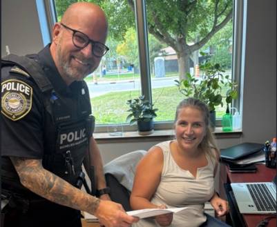 Cet agent est épaulé par une travailleuse sociale, par l’ensemble de ses 258 collègues et aussi par de nombreux responsables d’organismes communautaires qui sont autant de ressources pour aider les personnes âgées en difficulté. L’agent socio-communautaire responsable des aînés, Éric Boulianne, et la travailleuse sociale, Camylle Côté.