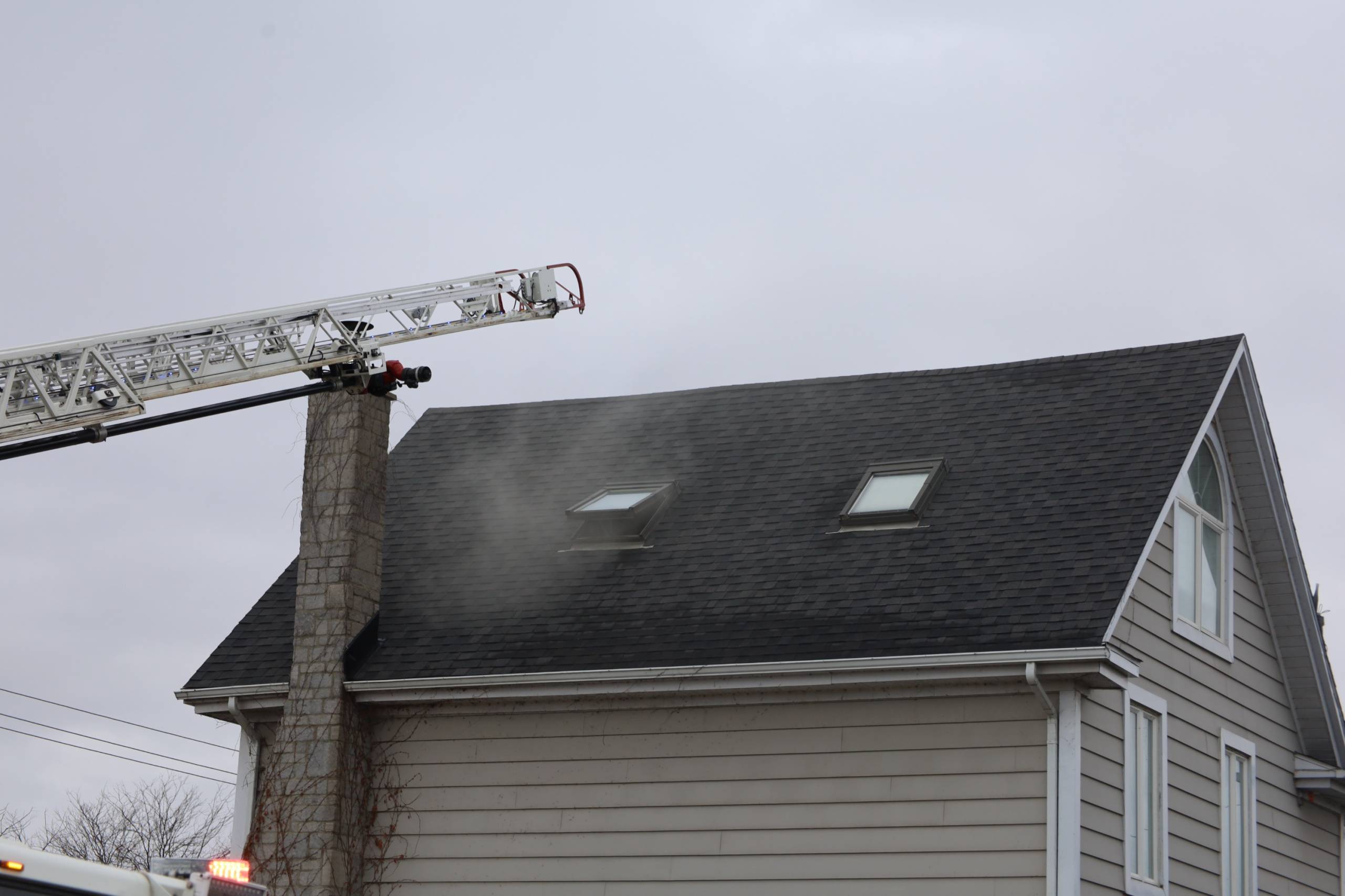 Les sapeurs ont pu ventiler par les trappes sur le toit de la maison. (Photo Journal Saint-François – Gaétan Prégent)