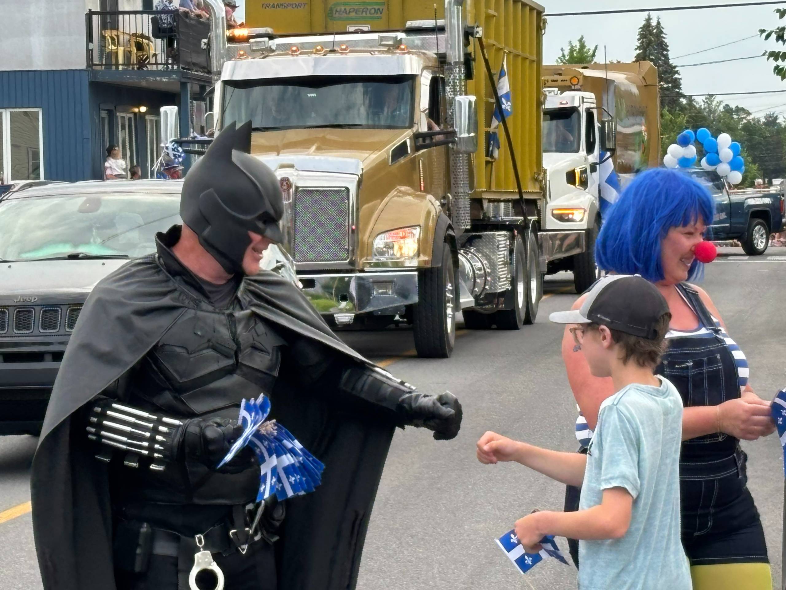 Batman s’est fait de nombreux amis le long du parcours. (Photo Journal Saint-François – Mario Pitre)