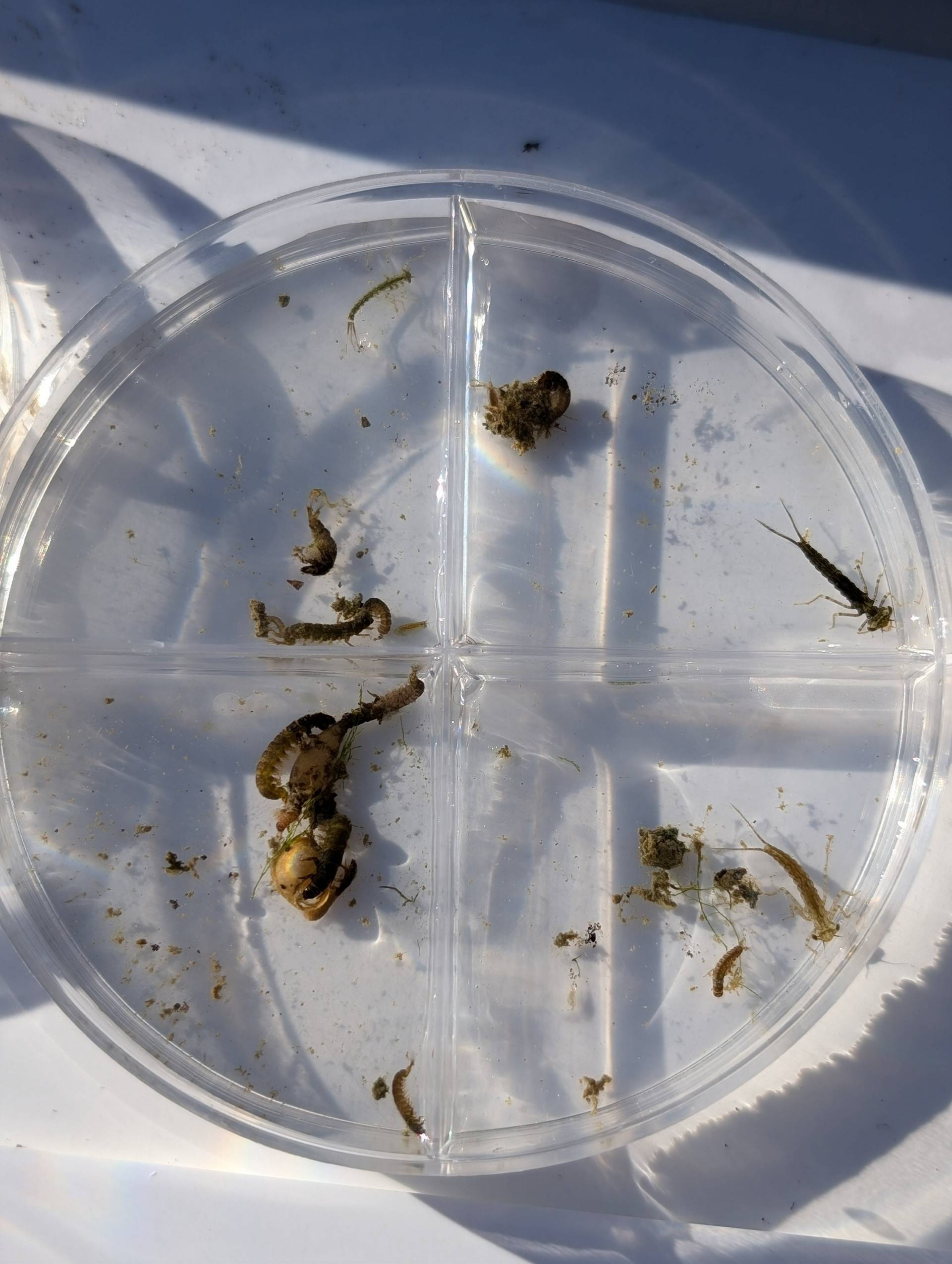 Les macroinvertébrés benthiques sont de petits organismes fort utiles : en plus de permettre à de nombreux poissons, oiseaux et amphibiens de se nourrir, ce sont des indicateurs de l’état de santé des cours d’eau. (Photo Caroline Côté-Larose – Comité ZIP du Haut Saint-Laurent)
