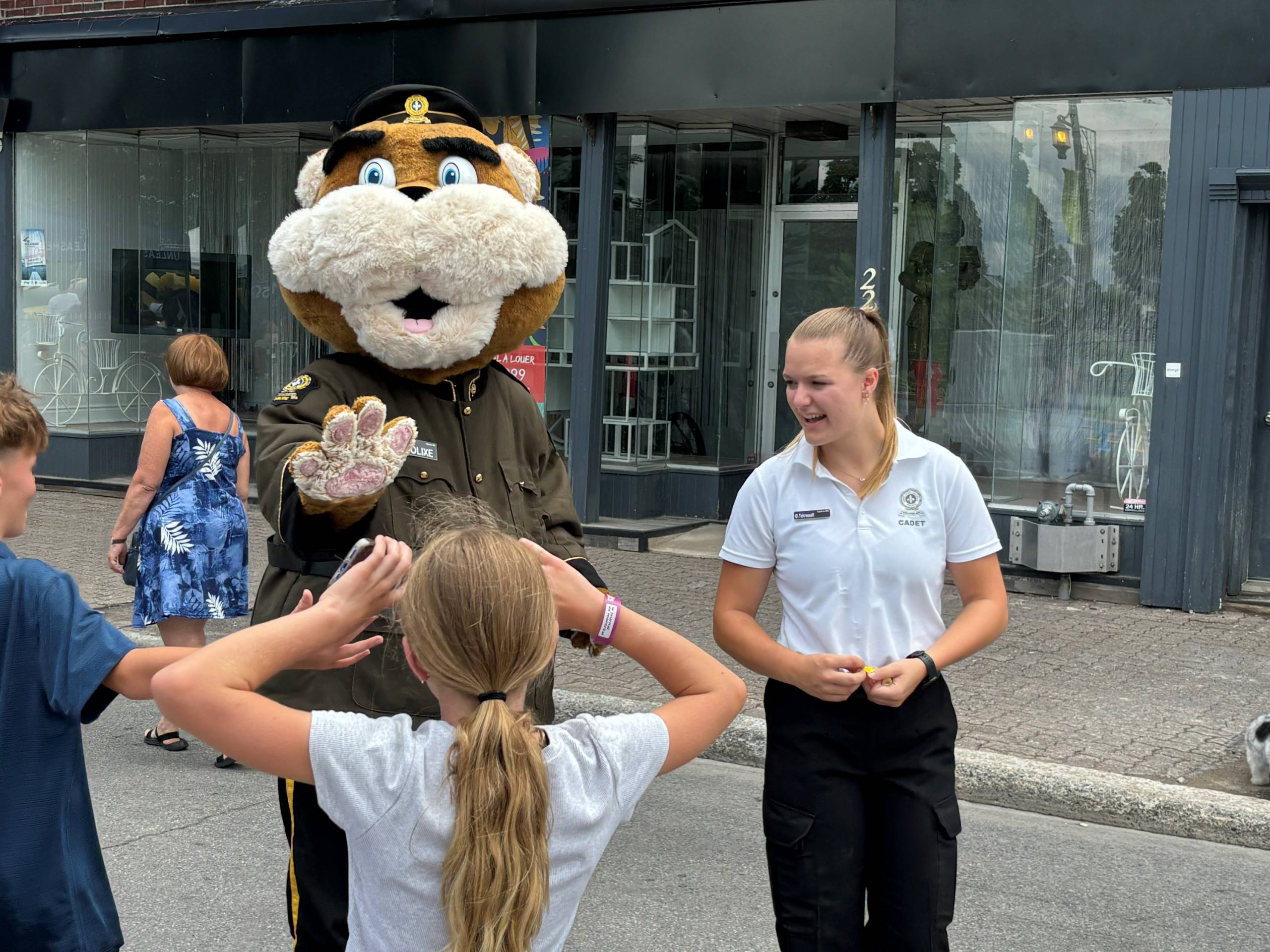 La mascotte Polixe de la Sûreté du Québec attire l’attention des plus jeunes. (Photo Journal Saint-François – Mario Pitre)